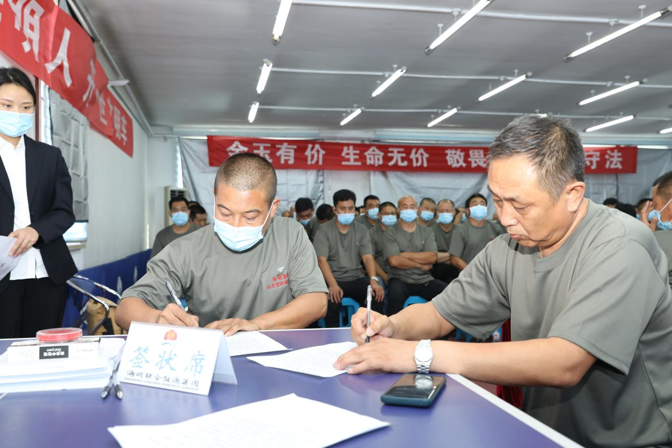 培训中,安委办全体人员和200多名北方货运驾驶员,全体起立,共同背诵“Ezpay人精神”,随后,集中观看了交通安全警示教育片;通报了北方货运有限公司“6.20” 和“7.09”两起交通责任事故,分析了事故原因,总结了事故教训,明确了事故责任;北方货运有限公司总经理石坚同志,在深入查找本单位交通安全管理上存在的突出问题同时,对今后货运交通安全工作进行了安排部署;为强化责任,北方货运有限公司与集团公司安委会、各货运车队队长与北方货运有限公司总经理、全体货运驾驶员与各货运车队队长分层次签定了《交通安全责任状》;2名货运车队队长和2名货运驾驶员代表进行了认真表态发言;全体货运驾驶员面向国旗和公司旗帜进行了集体安全宣誓!