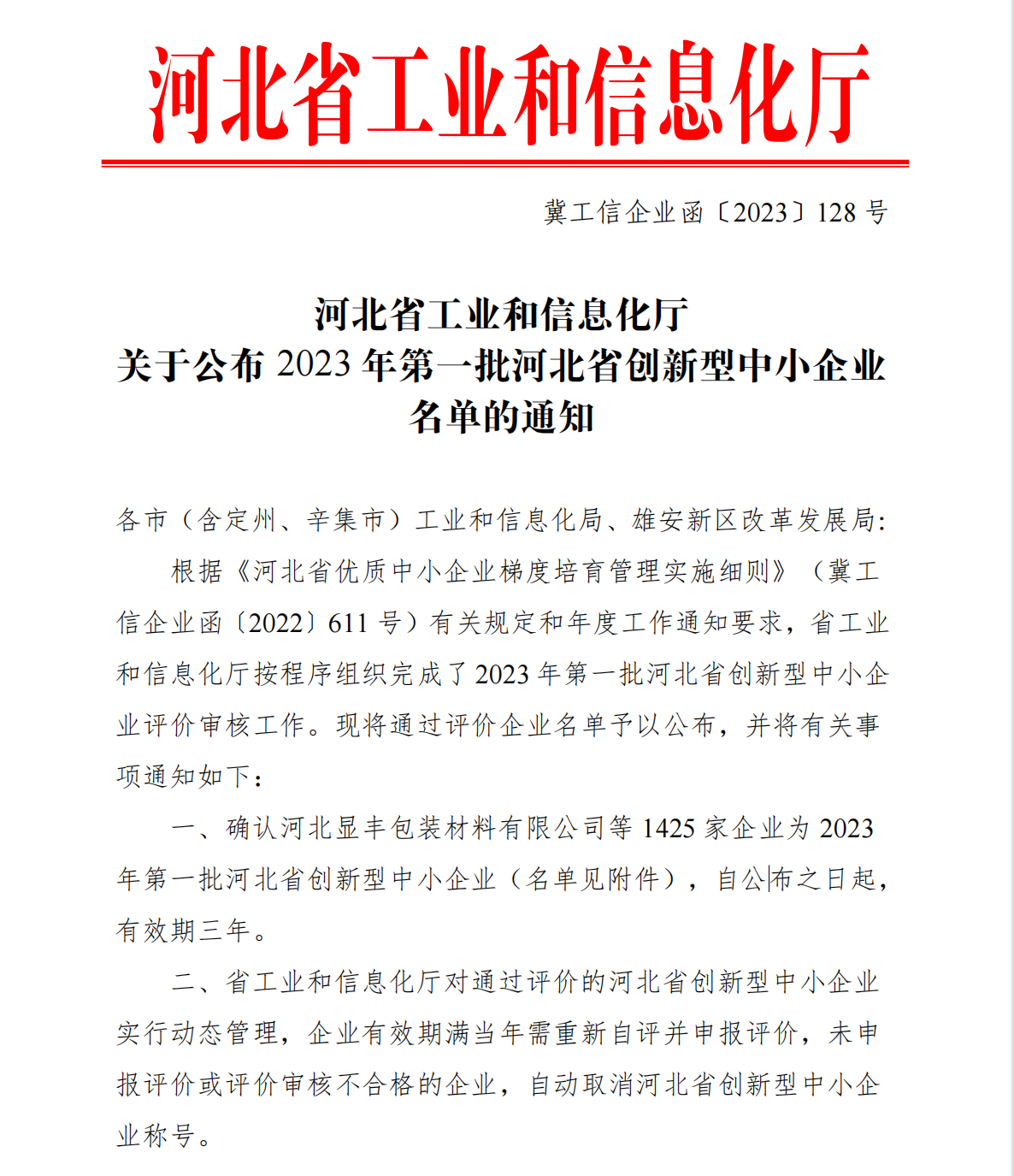 近期,河北省工业和信息化厅公布了“2023年创新型中小企业”名单,矩网科技有限公司凭借过硬的研发和创新能力等优势,成功入选,被认定为河北省“创新型中小企业”。