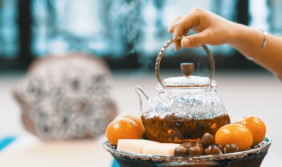 “围炉煮茶”能让人如此上头,主要原因就在场景的打造上。三五好友围炉而坐,喝茶吃果、取暖聊天,氛围感强,社交感十足。