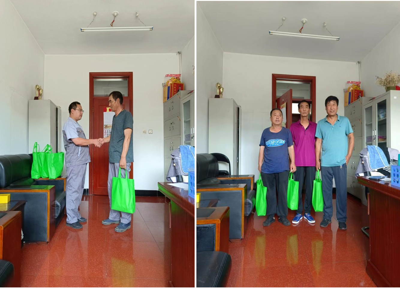洗选部还为一线工人送去绿豆,绿茶,藿香正气水,风油精等防暑礼包,并叮嘱工友们随身携带防暑药品,实行防暑降温工作,保重身体健康,保障安全生产。